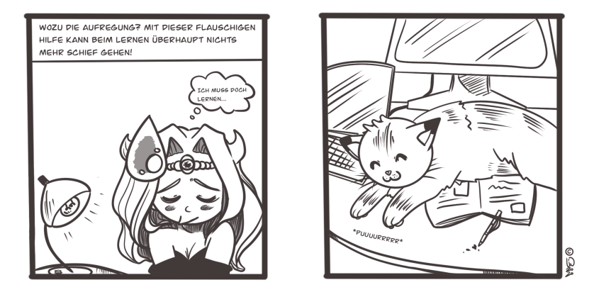 Although it takes more time, it was very funny drawing a 4-panel adventure. I had the idea a while ago telling stories with more panels, but never the time or story idea to complete it. For the next panel, I will hopefully come up with a part 2 of the Indiana Jones quest, and Azi will be able to find the artifact of vision, so she can finally see again! :D
